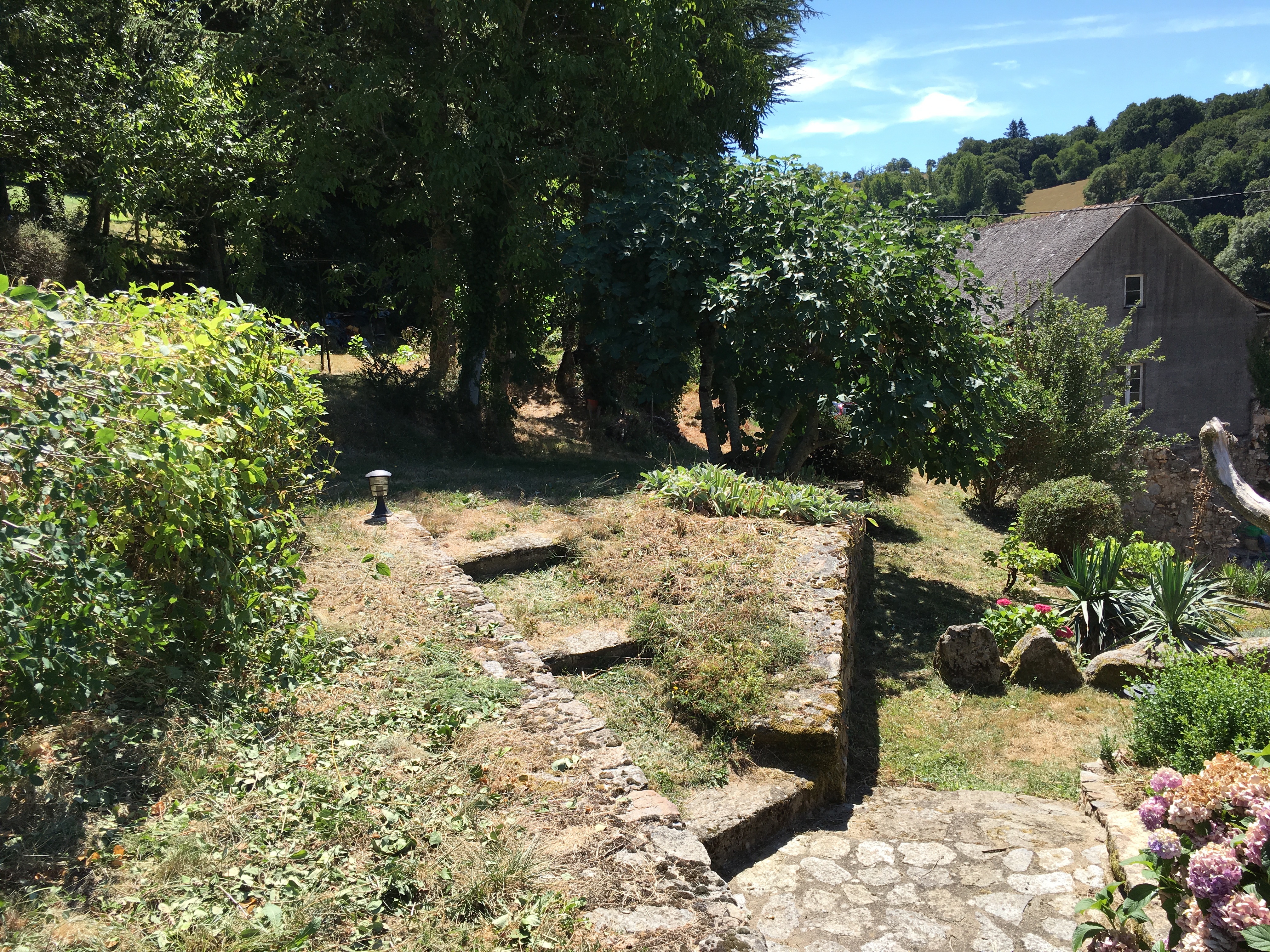Ce hameau agricole du XVIII°s, situé au Sud-Ouest de l’Aveyron, entre Najac et Villefranche-de-Rouergue, est typique des architectures vernaculaires du pays du Ségala. La maison familiale composée de blocs de granit et recouvertes d’écailles de lauzes est engravée dans un versant pâturée faisant face à une mosaïque de vallons qui alternent versants boisés et étendues bocagères. La commande est de créer des espaces de pause autour de la maison familiale, tout en valorisant la position particulière de la maison enchâssée dans la pente. Le projet s’est articulé autour de murets en pierre qui structurent la pente et abritent des terrasses en herbe.