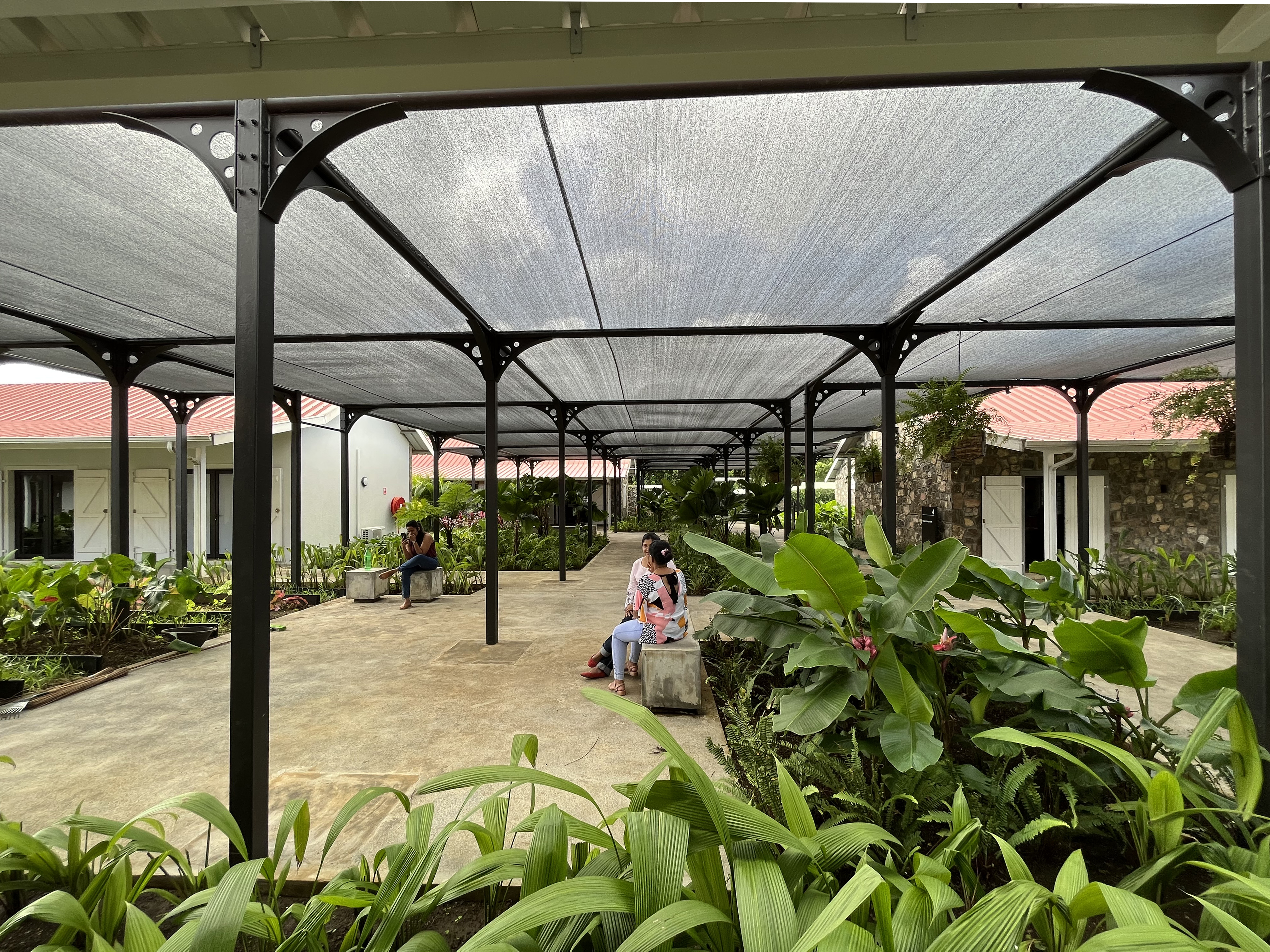 vue des jardinsLe Domaine de Labourdonnais est unepropriété privée de 540 hectares, fondée en 1774 et située au nord de l'île Maurice. Cet ancien domaine sucrier s'est progressivement diversifié autour des produits horticoles - fruits tropicaux et légumes - et de la création d'une pépinière offrant une grande variété d'arbres fruitiers et de plantes décoratives. Il est considéré comme le Jardin des plaines du Nord, avec ses vergers et son parc aux arbres immenses, entourantun des plus beaux châteaux mauriciens.