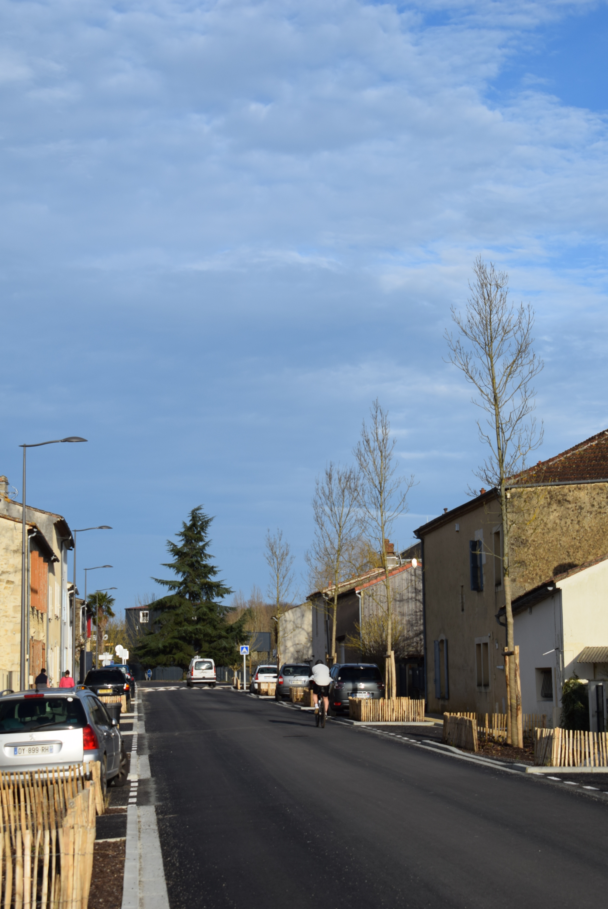 La commande consiste à changer l’image routière de cette entrée de ville, d’apaiser le traffic, et d’amener de la qualité et du végétal dans ce faubourg très minéral. L’aménagement propose un espace public plus apaisé, à la faveur d’un sens unique instauré. Un véritable cheminement piéton PMR est créé donnant accès au centre médiéval.