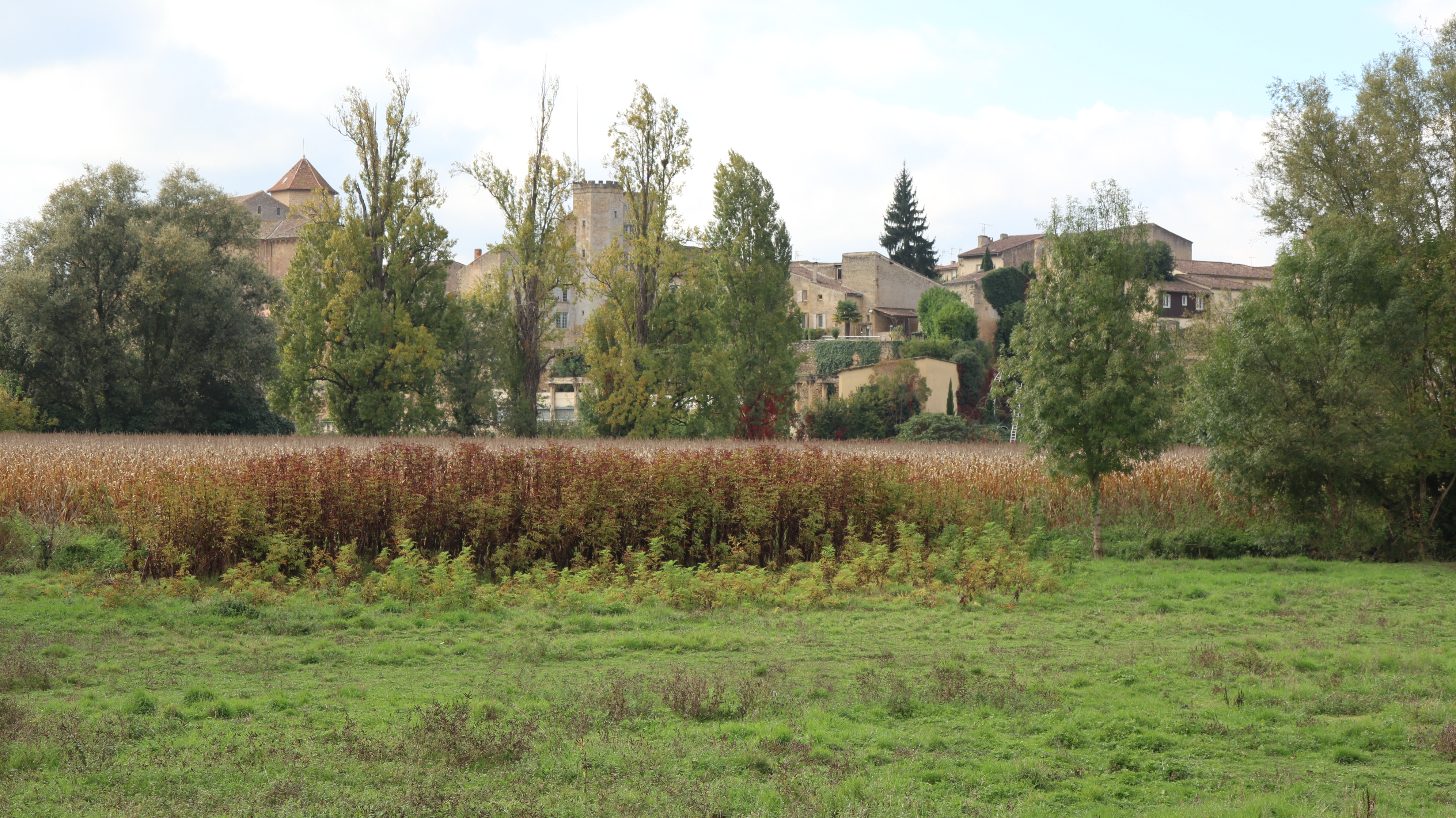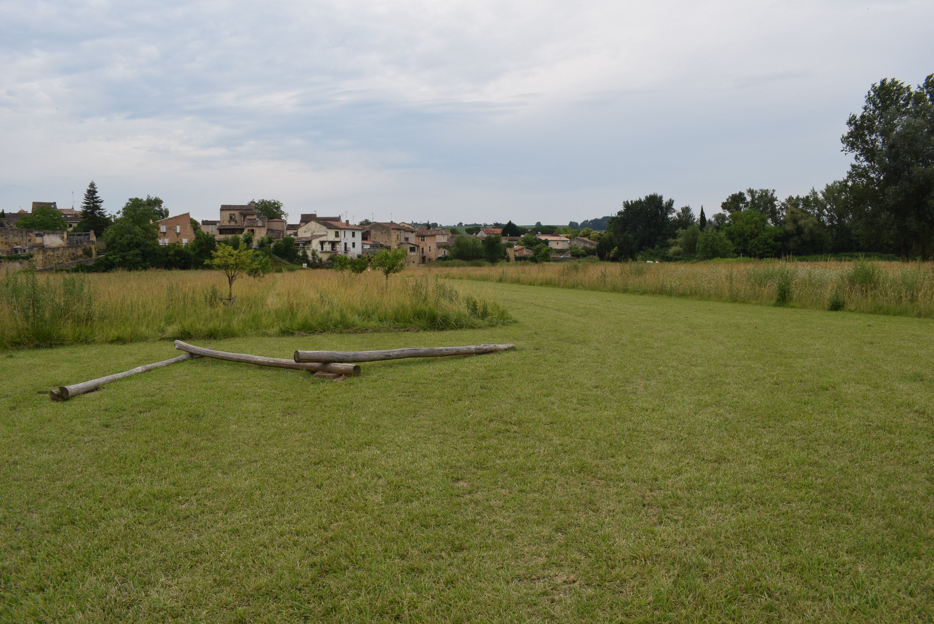 Le projet concerne la création d’une promenade au centre d’une ancienne parcelle agricole (maïs), au bas des remparts historiques à Saint-Macaire.